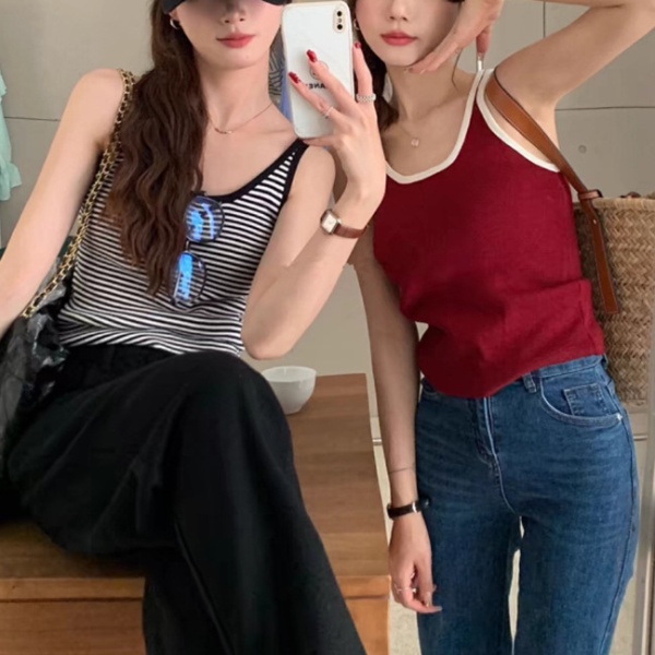 商品属性 [上市年份/季节] 2024年夏季 [主面料成分] 棉 [主面料成分2] 氨纶 [主面料成分2含量] 30%以下 [主面料成分含量] 90%(含)-95%(不含) [图案] 条纹 [弹力] 中弹 [是否跨境货源] 否 [款式] 吊带款 [流行元素] 撞色 [版型] 修身型 [肩带样式] 不可拆卸 [衣长] 短款(40cm<衣长≤50cm) [面料名称] 螺纹棉 [风格] 简约风 [风格类型] 日韩休闲