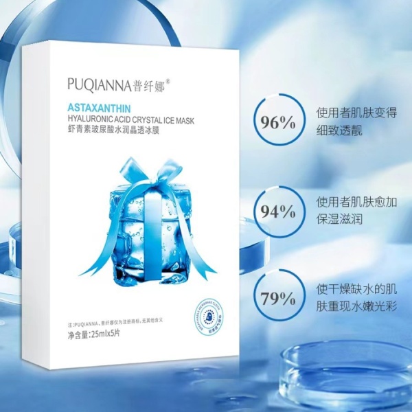 商品属性 [产品名称] 普纤娜虾青素玻尿酸水润晶透冰膜 [产地] 广东 [保质期] 3年 [化妆品功效] 深层清洁 [品牌类型] 国货品牌 [是否跨境出口专供货源] 否 [是否进口] 否 [特殊用途化妆品] 否 [生产许可证号] 粤妆20160920 [适用人群] 通用 [适用肤质] 通用 [非特化妆品备案证号] 粤G妆网备字2023117899