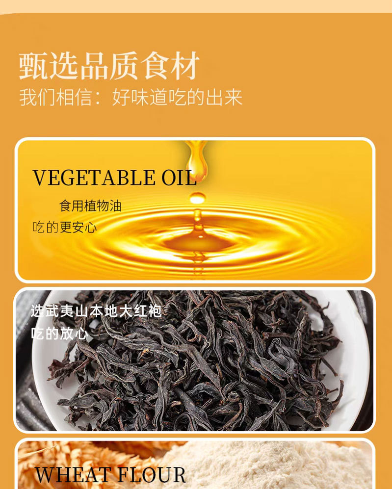 商品属性 [产品标准号] GB/T20977 [产品类别] 桃酥 [保质期] 6个月 [储存条件] 常温 [储藏方法] 避免日晒,高温或者潮湿地方 [净含量(规格)] 210g [制作工艺] 传统工艺 [包装系列] 简装系列 [原产地] 武夷山 [原料与配料] 见包装 [售卖方式] 零售、批发、商超 [商品条形码] 见包装 [是否含糖] 含糖 [是否进口] 否 [热卖月份] 全年 [特殊功效] 见包装 [生产厂家] 武夷山崇阳正好食品有限公司 [生产日期] 2024 [生产许可证编号] SC11635078205418