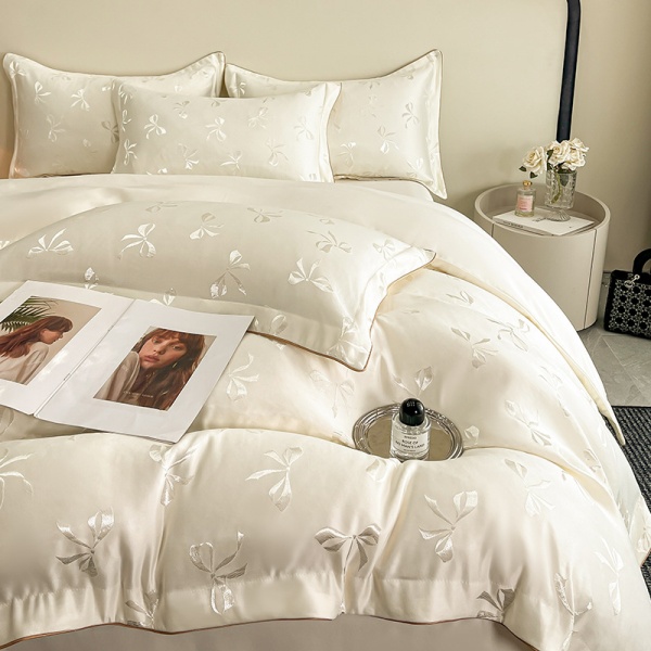 商品属性 [克重] 2000g(含)~2500g(不含) [加工定制] 是 [印染工艺] 活性印染 [图案] 纯色,几何图案 [是否一般纳税人] 否 [材质] 水洗天丝 [款式] 床单式 床笠式 [织造工艺] 提花 [风格] 公主风