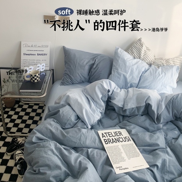 商品属性 [克重] 500g(不含)以下 [加工定制] 是 [印染工艺] 活性印染 [图案] 纯色 [是否一般纳税人] 是 [材质] 水洗棉 [款式] 床单式 [织造工艺] 水洗 [风格] ins风