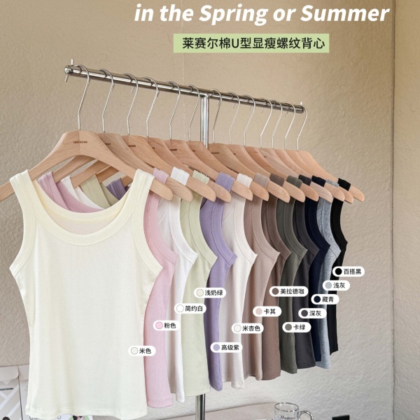 商品属性 [上市年份/季节] 2025年春季 [主面料成分] 天丝(莱赛尔纤维) [主面料成分2] 棉 [主面料成分2含量] 30%(含)-50%(不含) [主面料成分含量] 50%(含)-70%(不含) [图案] 螺纹 [弹力] 高弹 [是否跨境货源] 否 [款式] 肩带型 [流行元素] 螺纹 [版型] 修身型 [肩带样式] 双根式 [衣长] 普通款(50cm<衣长≤65cm) [面料名称] 莱赛尔 [风格] 休闲风 [风格类型] 日韩休闲