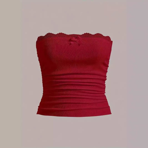 商品属性 [上市年份/季节] 2024年夏季 [主要下游销售地区1] 欧美 [主要下游销售地区2] 其他 [主面料成分] 涤纶(聚酯纤维) [主面料成分2] 氨纶 [主面料成分含量] 90%(含)-95%(不含) [图案] 纯色 [弹力] 中弹 [是否跨境货源] 是 [款式] 套头 [流行元素] 蕾丝 [版型] 修身型 [肩带样式] 无肩带 [衣长] 短款(40cm<衣长≤50cm) [跨境风格类型] 性感辣妹 [面料名称] 涤纶 [风格] 性感风 [风格类型] 私服名媛
